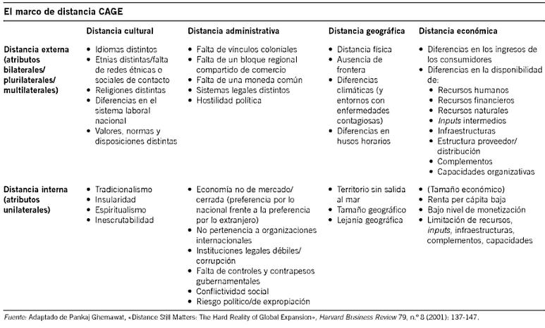 Distancia CAGE (Cultural, Administrativa, Geográfica y Económica)