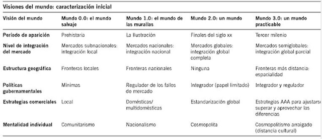 Mundo 3.0. Pankaj Ghenawat (India, profesor de IESE) ha escrito un excelente libro que pone en tela de juicio que el mundo sea plano económicamente. Con datos estadísticos en la mano demuestra que las fronteras existen y que cada persona tiene la cultura de su país que determina sus patrones de compra.